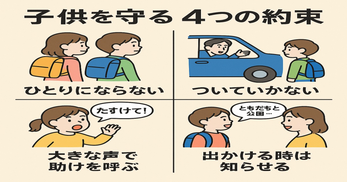 登下校、公園、買い物中など、可能な限り単独行動を避けるよう指導します。