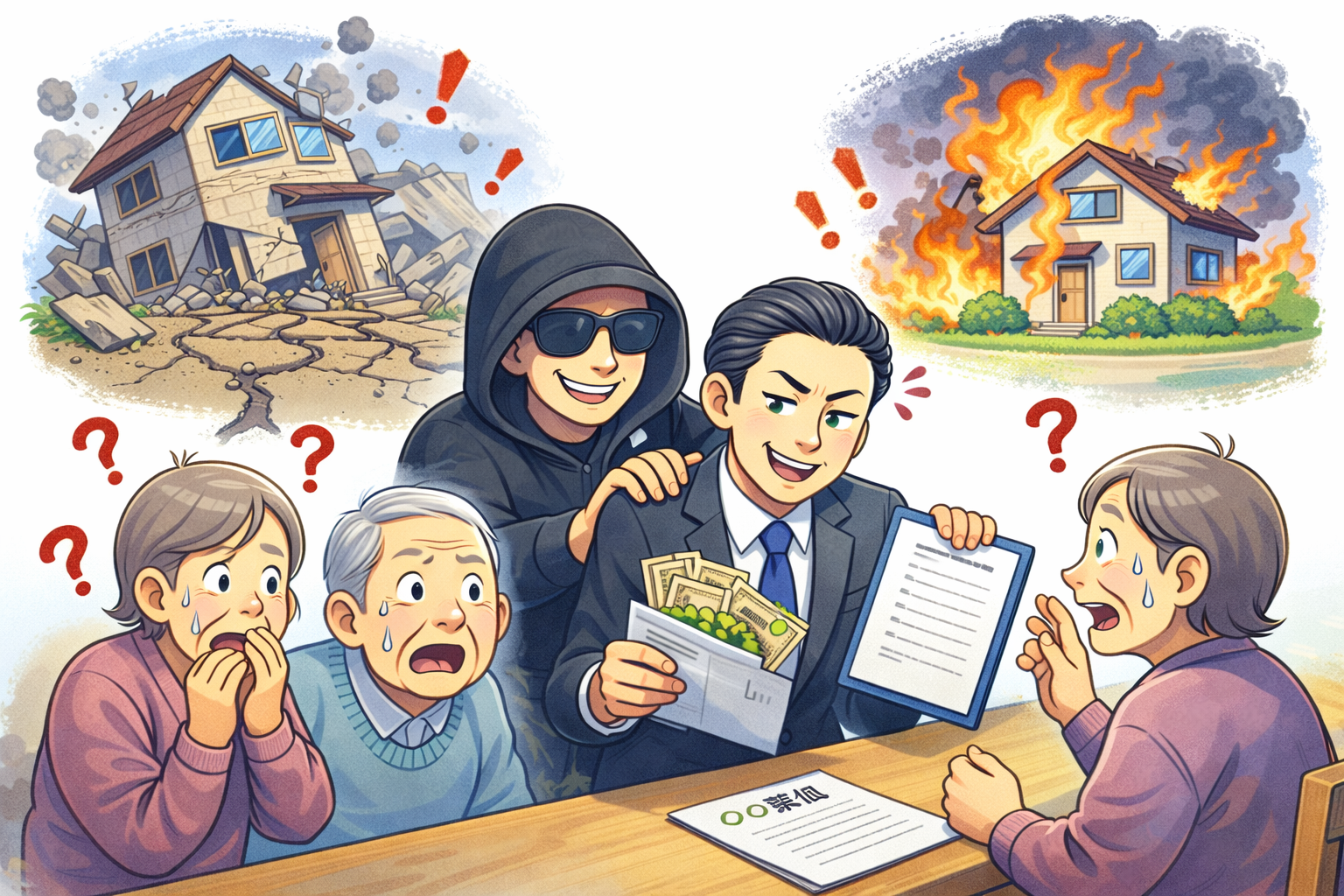 【今日の防犯】地震や災害が増える時期、不安な気持ちに付け込んだ詐欺や悪質商法が非常に増えています。