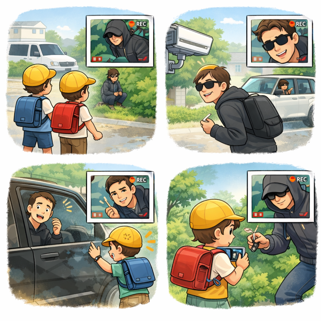 未就学児の場合、親御さんと一緒のことが多いですが、少し離れた隙(公園のトイレや自動販売機など)が狙われやすくなります。